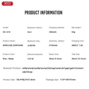 XO G16 Ακουστικά Bluetooth TWS ENC (Μπλέ)