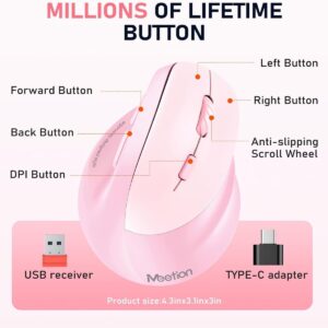 Meetion MT-BTM010L Αριστερό Εργονομικό Ασύρματο Ποντίκι Ροζ
