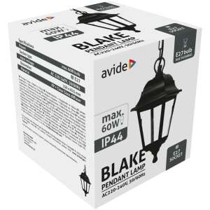 Avide Εξωτερικό Φωτιστικό Οροφής Blake 1xE27 82.5cm IP44 Μαύρο