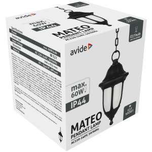 Avide Εξωτερικό Φωτιστικό Οροφής Mateo 1xE27 IP44 Μαύρο