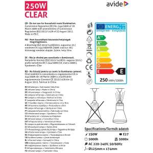 Avide Λάμπα Υπερύθρων E27 250W Διάφανο