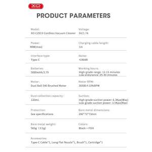 Μοντέλο: XO-CZ019 Cordless Vacuum Cleaner