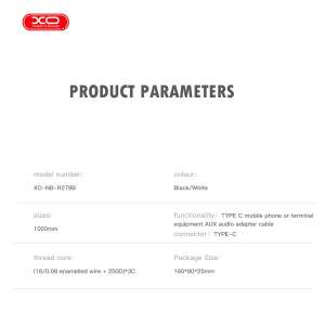 Το XO NB-R279B είναι ένα ανθεκτικό και υψηλής ποιότητας καλώδιο προσαρμογέα ήχου Type-C έως 3,5mm AUX, σχεδιασμένο για απρόσκοπτη συνδεσιμότητα ήχου με φορητές συσκευές Type-C και άλλο συμβατό εξοπλισμό. Με μήκος 1 m και ενισχυμένο πυρήνα νήματος (16/0,08 εμαγιέ σύρμα + 250D) 3C, εξασφαλίζει σταθερή μετάδοση σήματος και καθαρή ποιότητα ήχου.